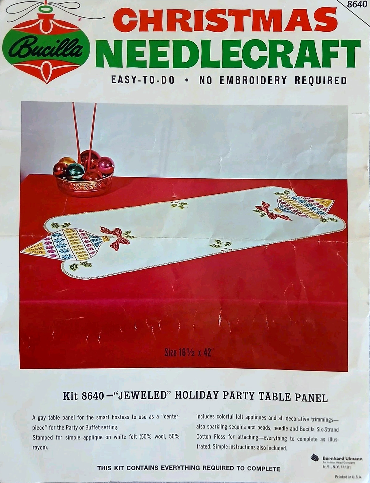Jeweled Holiday Party Table Panel 8050 1970 Felt Table-wear